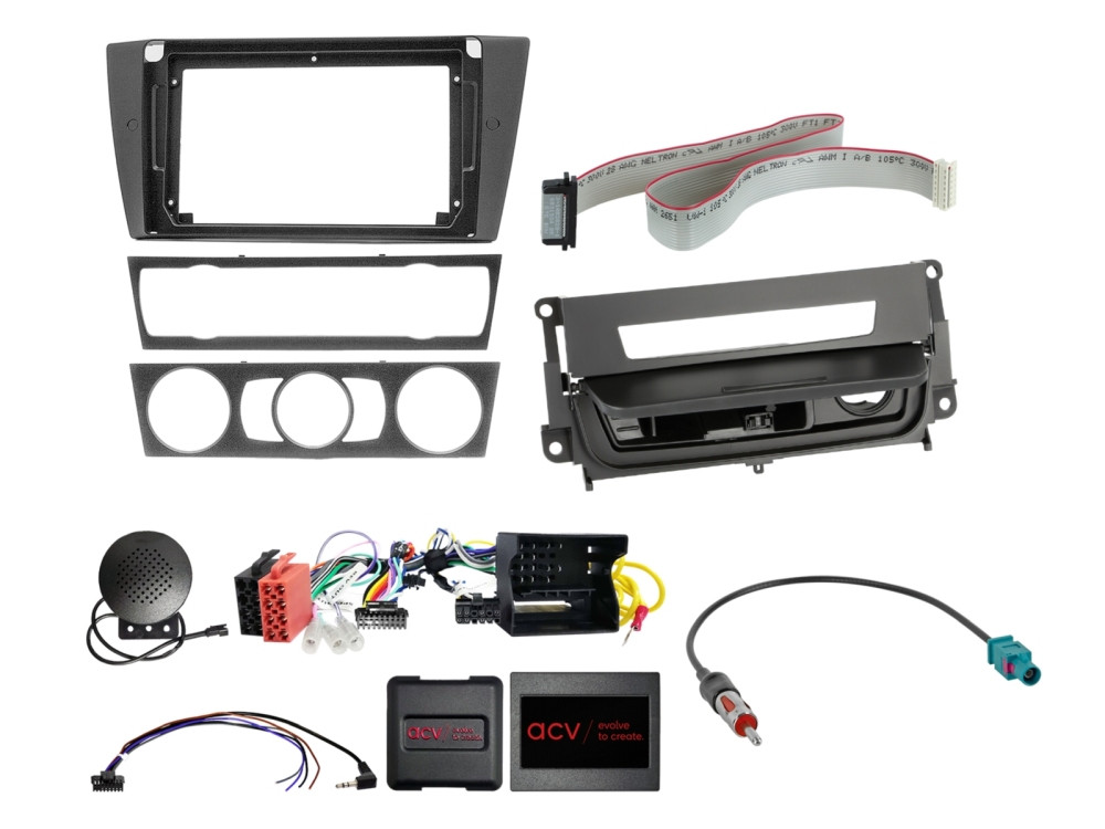 A BMW 3-as sorozatnál a 9 colos rádió beszerelésekor a gyári kapcsolósort át kell helyezni az alsó tárolórekeszbe. Ez a szett tartalmazza az ehhez szükséges kábelhosszabbítót és a speciális rekeszt is.